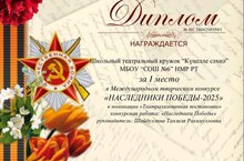 Поздравляем школьный театральный кружок и его руководителя Шайдуллину Танзилю Рахимулловну, занявших I место в Международном творческом конкурсе "Наследники Победы-2025" в номинации "Театрализованная постановка".