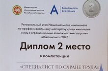 Поздравляем ученицу 8Б класса Коновалову Меланию, занявшую II место в Региональном этапе Национального чемпионата по профессиональному мастерству "Абилимпикс-2025" в компетенции "Специалист по охране труда". Гордимся!