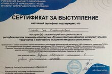 Учитель логопед-дефектолог нашей школы Хаерова Зоя Владимировна презентовала авторский проект на Республиканском семинаре-практикуме "Лучшие практики развития интеллектуального творчества и логического мышления младших школьников".