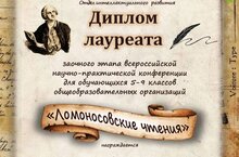 Поздравляем ученицу 5А класса Насибуллину Самиру, получившую диплом лауреата заочного этапа Всероссийской научно-практической конференции для обучающихся 5-9 классов "Ломоносовские чтения" (учитель Зиганшина Венера Гависовна).