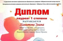 Поздравляем ученицу 5В класса Хамитову Элину, награжденную Дипломом лауреата I степени в номинации "Художественное слово" Регионального конкурса творческих работ и художественного чтения "Не залейте слов хороших", посвященного Году защитника Отечества (учитель Сергеева Ирина Юрьевна).