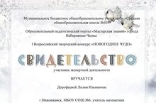 Учитель математики Дорофеева Лилия Ильинична и учитель родного языка Зиганшина Венера Гависовна стали участникоми экспертной деятельности I Всероссийского творческого конкурса "Новогоднее чудо".