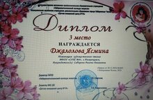 Поздравляем обучающуюся 6В класса Джалолову Ясмину, занявшую III место в Республиканском конкурсе творческих работ и художественного чтения "Ты лучше всех на свете, мама", посвященный Дню матери (педагог Сабирова Ралена Даимовна).