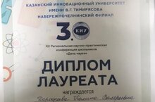 Поздравляем ученицу 9Б класса Дорофееву Полину, ставшую лауреатом Региональной научно-практической конференции школьников "День науки" (учитель Дорофеева Лилия Ильинична).