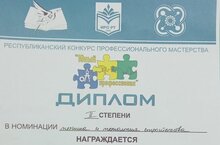 По итогам Республиканского конкурса профессионального мастерства ученица 9В класса Лойченко Екатерина заняла 1 место и ученица 9Б класса Сулейманова Алина - 2 место в номинации "Юный строитель". В номинации "Юный сварщик" диплом 2 степени получил ученик 9Б класса Никушев Никита.
