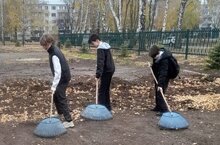 В преддверии осенних каникул учащиеся 7 класса под руководством заместителя директора Филиппова Владимира Николаевича привели в порядок школьный двор.