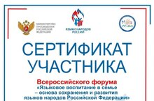 Сертификаты участников всероссийского форума "Языковое воспитание в семье - основа сохранения и развития языков народов Российской Федерации" получили наши учителя Зиганшина Венера Гависовна и Шайдуллина Танзиля Рахимулловна.