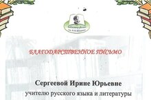 Благодарственным письмом награждена учитель русского языка и литературы Сергеева Ирина Юрьевна за подготовку победителя литературного конкурса "В поисках смысла". Конкурс посвящен 95-летию писателя В.М. Шукшина и его творчеству.