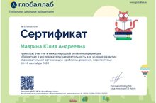 Учитель биологии и химии Маврина Юлия Андреевна приняла участие в Международной онлайн-конференции "Проектная и исследовательская деятельность как условие развития образовательной организации: проблемы, решения, перспективы".