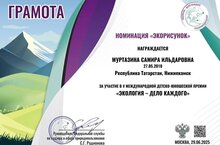 Обучающиеся 9Б класса Муртазина Самира, Сайфуллин Даниил и Митрофанова Милана приняли участие в V Международной детско-юношеской премии "Экология - дело каждого". Благодарственным письмом за поддержку участия детей, молодёжи и взрослых в конкурсных мероприятиях Премии награждена учитель биологии Маврина Юлия Андреевна.
