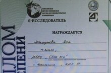 Поздравляем ученицу 11А класса Махмутову Яну, награждённую дипломом II степени Поволжской научно-исследовательской конференции "Я - исследователь" (учитель Дорофеева Лилия Ильинична).