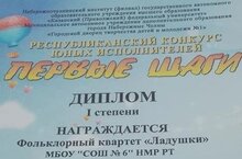 Поздравляем фольклорный квартет "Ладушки" - победителя Республиканского конкурса юных исполнителей "Первые шаги" (учитель Алиева Ольга Германовна).