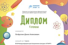 Поздравляем победителей Международного дистанционного конкурса "Старт" по предмету "Физика"! Дипломом I степени награждены Лотфуллин Данил, Галиева Альфия, Ганиева Зарина, дипломом II степени - Зарафиева Доминика, Сайфуллин Даниил. Свидетельство о подготовке победителей получила учитель физики Яковлева Анастасия Владимировна. Конкурс организован на платформе "Инфоурок".