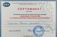 Психолог школы Сердечная Ксения Сергеевна приняла участие в муниципальном научно-практическом семинаре "Цифровые технологии в среднем и профессиональном образовании".
