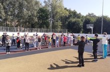 Утренняя зарядка важна и нужна! Дружно и весело отдыхающие пришкольного лагеря делают разминку под руководством учителя физкультуры Крайновой Анастасии Алексеевны.