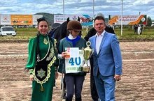 Обучающаяся 8В класса Нурыева Карина и её конь Каракëз заняли I место в скачках на муниципальном празднике "Сабантуй".