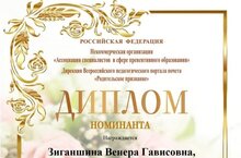 Поздравляем Зиганшину Венеру Гависовну, номинанта Всероссийской профессионально-общественной инициативы "Родительское признание-2023".