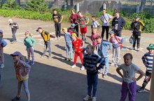 Каждое утро в пришкольном лагере проводится зарядка на свежем воздухе.