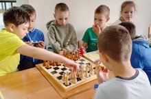 В игровой комнате организованы занятия по шахматам для всех отдыхающих пришкольного лагеря.