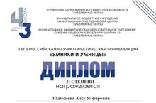 Поздравляем Шамсиеву Алсу - дипломанта II степени Всероссийской научно-практической конференции "Умники и умницы" (учитель Зиганшина Венера Гависовна).
