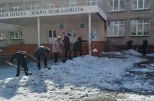 Обучающиеся 7А класса приняли участие в акции по благоустройству школьного двора, рыхлению снега.