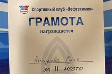 Поздравляем ученицу 8А класса Ахмадиеву Аделю, занявшую второе место в турнире по лёгкой атлетике на призы Деда Мороза. Турнир проводил спортивный клуб "Нефтехимик".