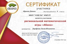 Юные математики школы №6 приняли активное участие в региональной математической игре "Абака" (учителя Дорофеева Лилия Ильинична, Миннегалиева Раиля Хамитовна).