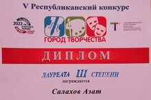 Поздравляем Салахова Азата, ставшего лауреатом III степени Республиканского конкурса "Город творчества" в номинации "Народные инструменты. Гитара. Соло".