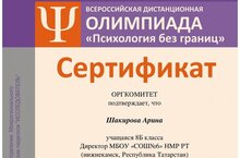 3. Сертификат Шакировой Арине, ученице 8Б класса.