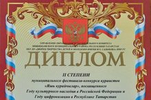 Дипломом второй степени муниципального фестиваля-конкурса кураистов "Яшь курайчылар", посвященного Году культурного наследия народов России и году цифровизации в РТ, награждён ансамбль кураистов "Йолдызлар" (СОШ №6, ДТДиМ им. И Х Садыкова, педагог дополнительного образования Латыйпова Э.Р., классный руководитель Миргасимова Гульназ Фаворисовна).
