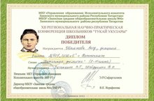 Шамсиева Алсу, обучающаяся 9Б класса, приняла участие в XXII региональной научно- практической конференции школьников "Тукай укулары" и стала победителем (учителя Зиганшина Венера Гависовна, Шайдуллина Танзиля Рахимулловна).