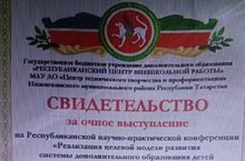 Руководитель школьного литературно-краеведческого музея имени Рашита Гарая, учитель технологии Хабирова Айгуль Миншакировна приняла участие на Республиканской научно-практической конференции "Реализация целевой модели развития системы дополнительного образования в Республике Татарстан".