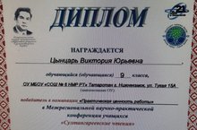 Поздравляем обучающуюся 9Б класса школы №6 Цынцарь Викторию, победителя в номинации "Практическая ценность работы", в Межрегиональной научно-практической конференции учащихся "Султангареевские чтения" (учитель Сергеева Ирина Юрьевна).