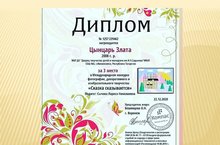 Поздравляем Цынцарь Злату ( 5"а" класс, воспитаннику детского объединения Компьютерная графика ДТД и М им И.Х.Садыкова), занявшую третье место в Международном конкурсе фотографий, декоративного и изобразительного творчества "Сказка сказывается"( ПДО Сычева Лариса Николаевна, кл.рук. Миннегалиева Раиля Хамитовна)