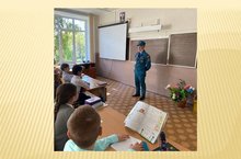 В рамках Месячника безопасности прошли встречи с сотрудником пожарной части Корсаковым В.С.. Детям рассказали о правилах пожарной безопасности.