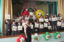 В нашей школе прошло традиционное праздничное мероприятие "Посвящение в первоклассники". В гости к детям пришли Смайлик и Нюша-Нехочуша, которые загадывали загадки, пели песни и танцевали с детьми. Первоклассники приняли клятву, обещали учиться на "отлично" и хорошо вести себя в школе. Все малыши получили в подарок книгу.