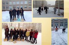 "Снежный десант " 10-11 классов очистил школьный двор и прилегающие дорожки на территории школы, 9 " А" класс очистили дорожки и подъездные пути на территории школы.