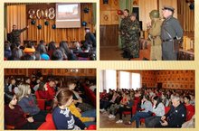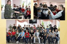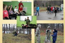 Совместное выступление поискового отряда "Нефтехимик" и военно-патриотического клуба "Наследие" перед юнармейцами. Поисковый отряд " Нефтехимик" был создан в 2004 году. Отряд входит в РОМО "Объединение "Отечество". Командир отряда - Ланцова Ольга Николаевна.
