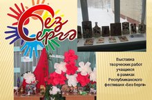 В рамках Республиканского фестиваля “Без бергә была оформлена выставка творческих работ учащихся, выполненных в рамках занятий в кружках дополнительного образования “Юный столяр” (педагог Алпыспаев Н.З.), “Дизайн и техническое моделирование”(педагог Хабирова О.М.), “Волшебная кисточка” (педагог Глухарева И.С.). Представлены индивидуальные и коллективные работы учащихся 1-5 классов, выполненные как совместно с родителями, так и в рамках внеурочной деятельности.