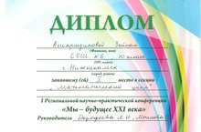 По итогам конференции дипломом первой степени в секции « «Математический цикл» награждена обучающаяся 10 «А» класса нашей школы Ахияртдинова Зайнап, руководитель Дорофеева Л.И., учитель математики, Моченова О.В., учитель информатики.. От чистого сердца поздравляем с яркой победой и желаем дальнейших успехов.