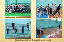 День спорта был проведен в пришкольном лагере "Снежинка". Отдыхающие лагеря под руководством воспитателей и учителя физической культуры Крайновой А.А. выполняли нормативы ГТО, участвовали в спортивных соревнованиях.