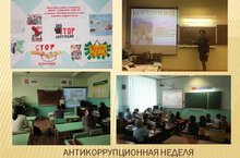 В рамках Антикоррупционнорй недели в школе прошли классные часы и беседы, показ мультфильмов на антикоррупционные темы, оформлена выставка плакатов «Нет коррупции!».