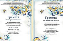 В соотвествии в планом работы МОи Н РТ , управления образования ИК НМР РТ на 2016- 2017 уч.год с целью повышения статуса педагога и формирования уважительного отношения к учителю был проведен муниципальный этап V Республиканского конкурса “Мой любимый учитель”. По итогам конкурса(приказ УО № 474 от 14.10.2016) грамотами в номинации “За творческий подход” награждены Иванова Татьяна, Кулешова Кристина (педагог Глухарева И.С.)