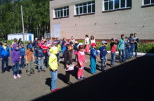Утренняя зарядка в пришкольном лагере 04.06.2016