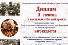 Во исполнеии приказа УО №179 от 12.04.2016г. в сответсвии с положением в лицее №14 был проведен муниципальный этап Республикаснкого военно-паториотического фестиваля “Я помнить призываю”, посвященнный 71 –й годовщине Победы в ВОВ 1941-1945гг. По итогам Муниципальный военно - патриотического фестиваля «Я помнить призываю» (приказ УО №256 от 19.05.16) команда обучающиеся под руководством Глухаревой И.С., Хабировой А.М., Юнусова М.Р. заняла II место в номинации “ Луший проект”.