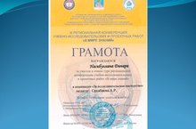 Поздравляем Насибуллину Динару, обучающуюся 6 «А» класса, принявшую участие в III региональной конференции учебно –исследовательских и проектных работ « В мире знаний». На конференцию была представлена исследовательская работа по теме «Фатих Кәримнең сугыш чоры әсәрләрендә батырлык темасы». (Учитель татарского языка Сахабиева А.Р.)