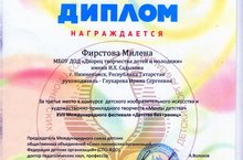 Поздравляем Фирстову Милену, занявшую III место в XVIII Международном фестивале «Дество без границ» в конкурсе детского изобразительного искусства и художественно- прикладного творчества «Мечты детства». Педагог Глухарева И.С.