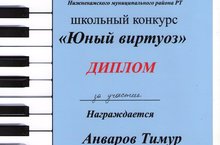 Поздравляем обучающегося 4 «Б» класса Анварова Тимура, принявшего участие в конкурсе «Юный виртуоз», проводимом Нижнекамской детской музыкальной школой №6.