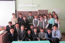 14 февраля 2015года состоялась встреча учащихся 6 "Б" класса с выпускником школы, гвардии младшим сержантом Макаровым Владиславом, который рассказал о службе в современной армии, войсках ВДВ, радостях и трудностях, буднях солдата. Учащиеся задавали вопросы о питании солдатов , условиях проживания в армии, количестве прыжков с парашюта, доводилось ли бросать гранаты и т.д. Макаров Владислав ответил на все интересующие воспросы, сказав, что все чему его учили в школе помогло ему в армии, поэтому важно знать все школьные предметы, уметь учить стихи( что бы выучить Устав ВС РФ), географию (для ориентирования на местности), физику( что бы добыть воду в походе), и, конечно же, заниматься физкультурой и спортом.