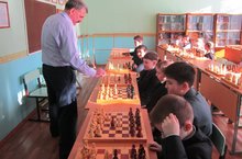 10 февраля 2015 года в рамках месячника гражданско -патриотического воспитания, в предверии Дня защитника Отечества был проведен сеанс одновременной игры в шахматы с заведующим отдела "Шахматы" ДТД и М им И.Х.Садыкова Телепениным Н.И. В игре приняли участие около 25 юных шахматистов 3 - 6 классов нашей школы.